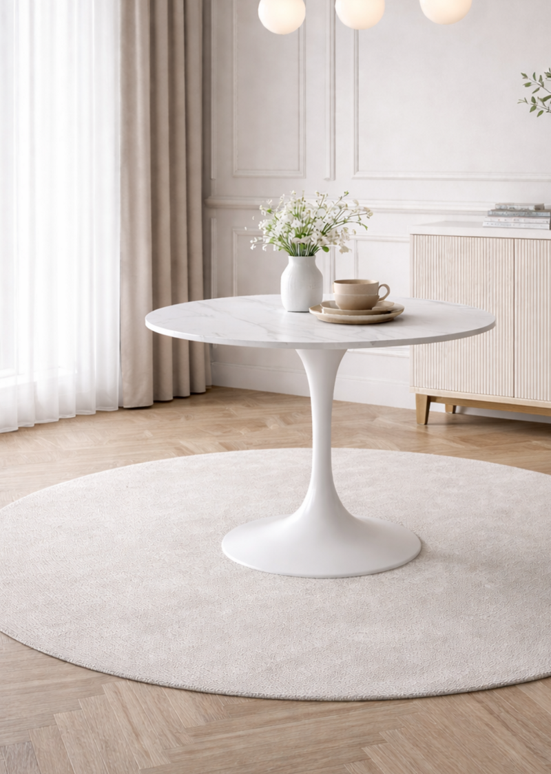 Con il suo top in ceramica marmorizzata e la forma tonda, Buenos Aires è il tavolo ideale per ambienti eleganti e armoniosi. Design classico rivisitato, perfetto per valorizzare cucine e living dallo stile senza tempo.