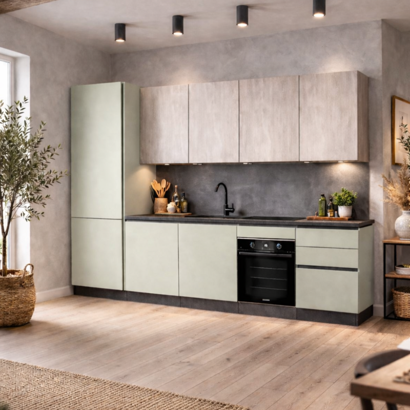 Canonica porta in cucina il calore della semplicità con linee equilibrate e materiali visivamente naturali. Una soluzione perfetta per ambienti accoglienti e senza tempo. Disponibile in misure 305 o 363 cm, con colonna frigo a destra o sinistra, elettrodomestici, lavello e miscelatore esclusi, disponibile in una sola colorazione.