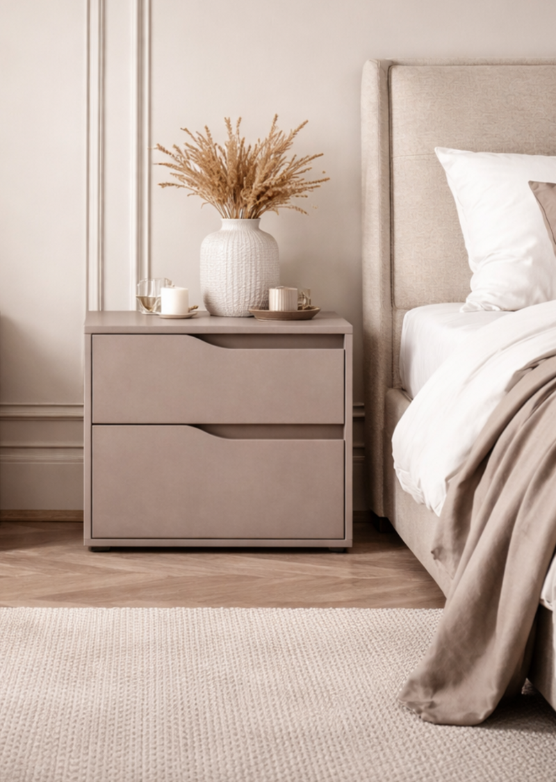 Sissi è un comodino raffinato con 2 cassetti, perfetto per completare la zona notte in stile classico contemporaneo. Riprende le finiture dell’armadio Ambrogio, per un insieme armonico e ricercato. Disponibile in due colorazioni coordinate.