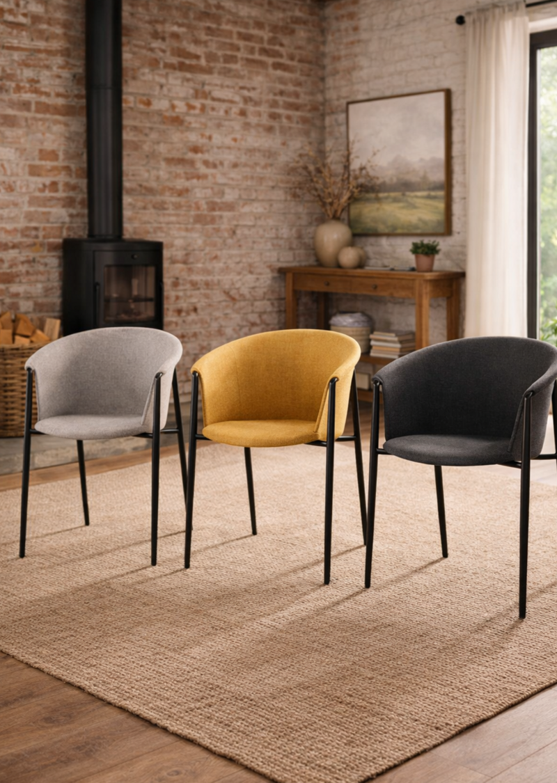 Verna è una sedia con seduta in tessuto morbido e struttura in metallo discreto, pensata per ambienti rilassati e autentici. Unisce praticità, comfort ed estetica sincera, perfetta per arredare con semplicità elegante.